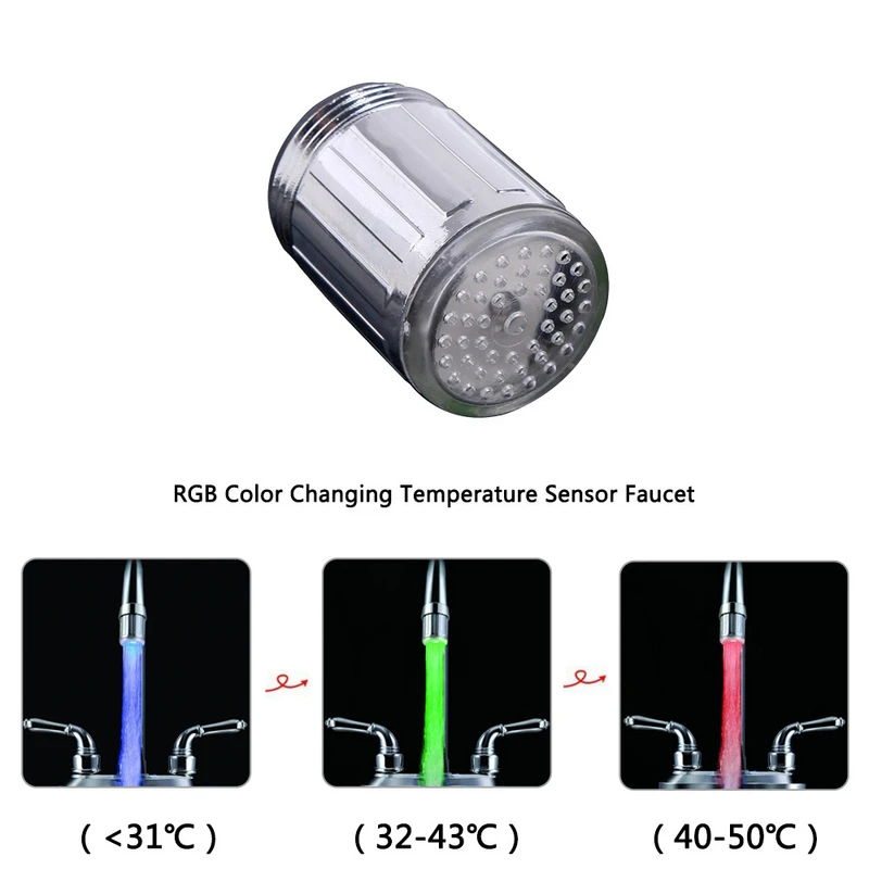 با وصل جریان آب نور های LED با رنگ های مختلف نمایان می شود و جریان آب کمی رنگی به نظر می رسد. سر شیر آب RGB دارای رقص نور می باشد و به صورت خودکار تغییر حالت رنگ می دهد و نور مخلوط به رنگ تصادفی با زمان تغییر می کند که یک تجربه لذت بخش و فوق العاده را به شما ارائه می دهد.
